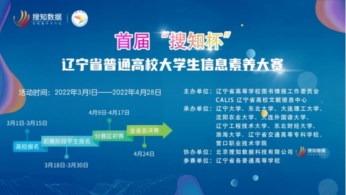 为贯彻教育部《教育信息化2.0行动计划》通知精神,落实教育部《高等学校数字校园建设规范(试行)》有关信息素养培养方式的总体要求,强化大学生信息意识,提高大学生信息知识掌握程度,培养大学生信息应用能力,增强大学生信息伦理与安全素养,全面提升大学生信息素养教育水平,辽宁省高等学校图书情报工作委员会、CALIS辽宁省高校文献信息中心举办首届辽宁省普通高校大学生信息素养大赛。