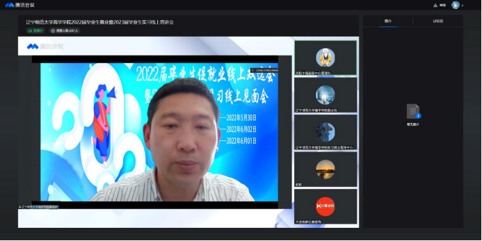 会上,就业指导中心潘光辉主任首先对当前疫情下就业形势进行了详细分析,希望同学们认清就业形势,准确定位;树立“先就业后择业”观念;积极参与竞争,主动出击。建议个别有创业意愿的同学应理性分析市场环境,做好风险评估后大胆创业。随后,潘光辉主任带岗直播,对庄河林水资源集团有限公司、华晨宝马汽车有限公司、沈阳猿力科技有限公司、大连城堡酒店开发有限公司城堡酒店、辽宁乐股软件股份有限公司等10余家企业进行了实习就业岗位信息的重点讲解及推送。