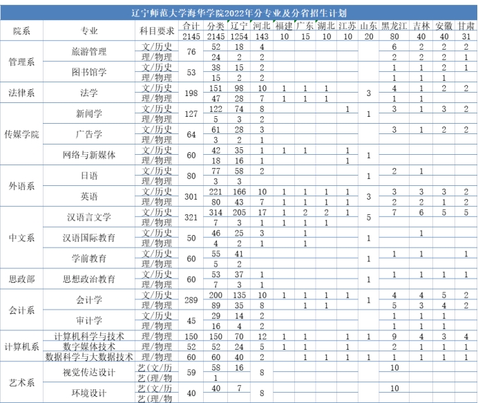 2022年分专业及分省招生计划