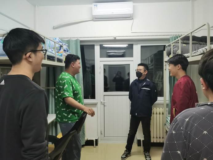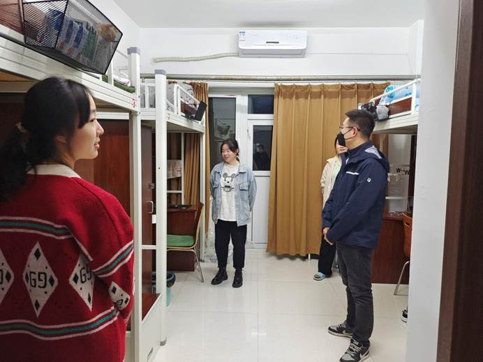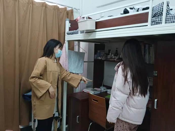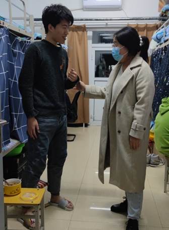 目前,学生都在线上上课,在寝室走访中,王老师与学生们进行面对面深入交流,及时听取并反馈他们的诉求,尽全力妥善解决所遇困难和问题,缓解他们焦虑的情绪,督促同学们上好网课,吃好三餐,调适身心,锻炼身体,减少网购,整理好寝室卫生,养成良好的生活习惯。