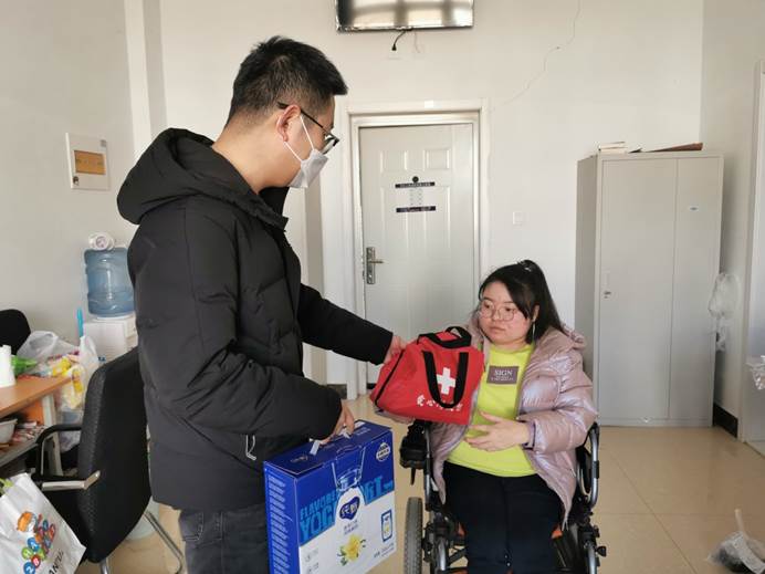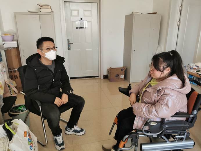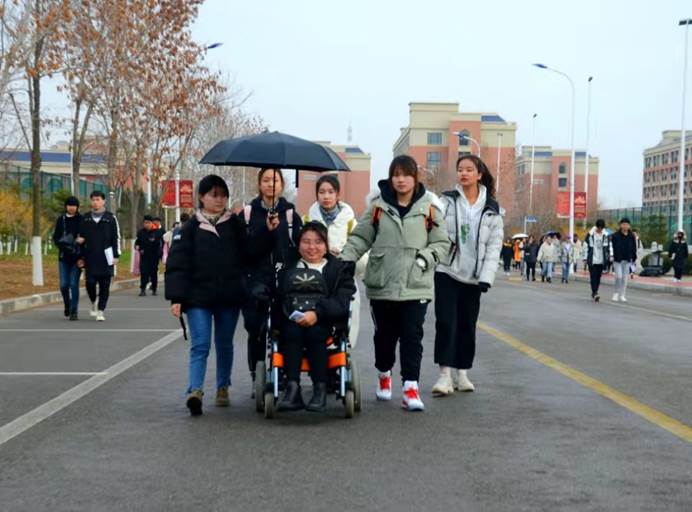 3月29日,会计系党支部教工党员王歧山同志来到思诚苑4栋109寝室,这里住着一位“轮椅女孩”——于艳苹。于艳苹是beat365会计系2019级会计6班学生,从小因病导致身体残疾,高额的治疗费用使这个家庭负债累累。从入学之初,学校党总支就给予于艳苹以特别的关怀,特许她的母亲“陪读”,将于母安排为公寓保洁以获得收入。会计系党支部组织学生成立爱心志愿小组接送她上课,党员教师成立助学团队对其一对一课后辅导。两年半以来,爱心志愿小组的同学风雨无阻,天天陪伴、护送,帮她顺利越过路途中的每一级台阶、楼梯。
