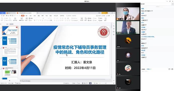 四位主讲人分享过后,与会辅导员深受鼓舞,积极参与发言讨论,王维利、胡京、李盼、曲祾奥、刘一兰、张立莹老师也分享了自己对工作制度的理解和工作的感悟。