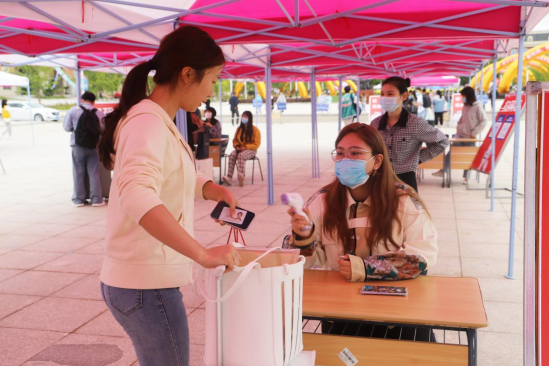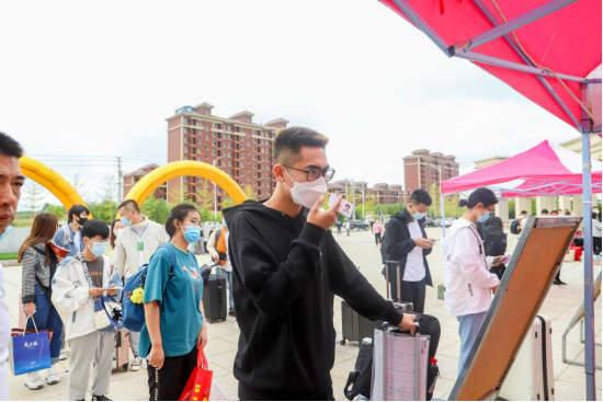 由于当前疫情防控形势依然严峻复杂,学校坚持简化报道手续,进行精细化管理。学校在庄河北站设立新生入学接站点,安排专车接站到校。新生在完成健康码、核酸检测结果、行程卡查验,测量体温、行李消杀等流程后,分别到各院系报到点正式办理报到手续。外省区新生另需做核酸采样。新生报到工作中,相关工作人员、学生志愿者始终以满腔的热情、饱满的精神状态,细致周到地为新生服务,参与本次迎新志愿服务活动的志愿者600余人次。