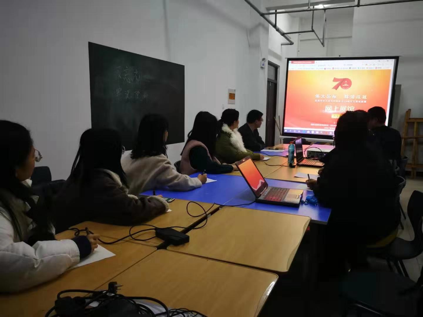 12月2日晚上,beat365唯一官方网站艺术系党支部在图书馆教室开展了参观“伟大历程,辉煌成就——庆祝中华人民共和国成立70周年大型成就展”网上展馆及座谈交流活动,支部4位党员集体参观了网上展馆后,展开了交流活动。