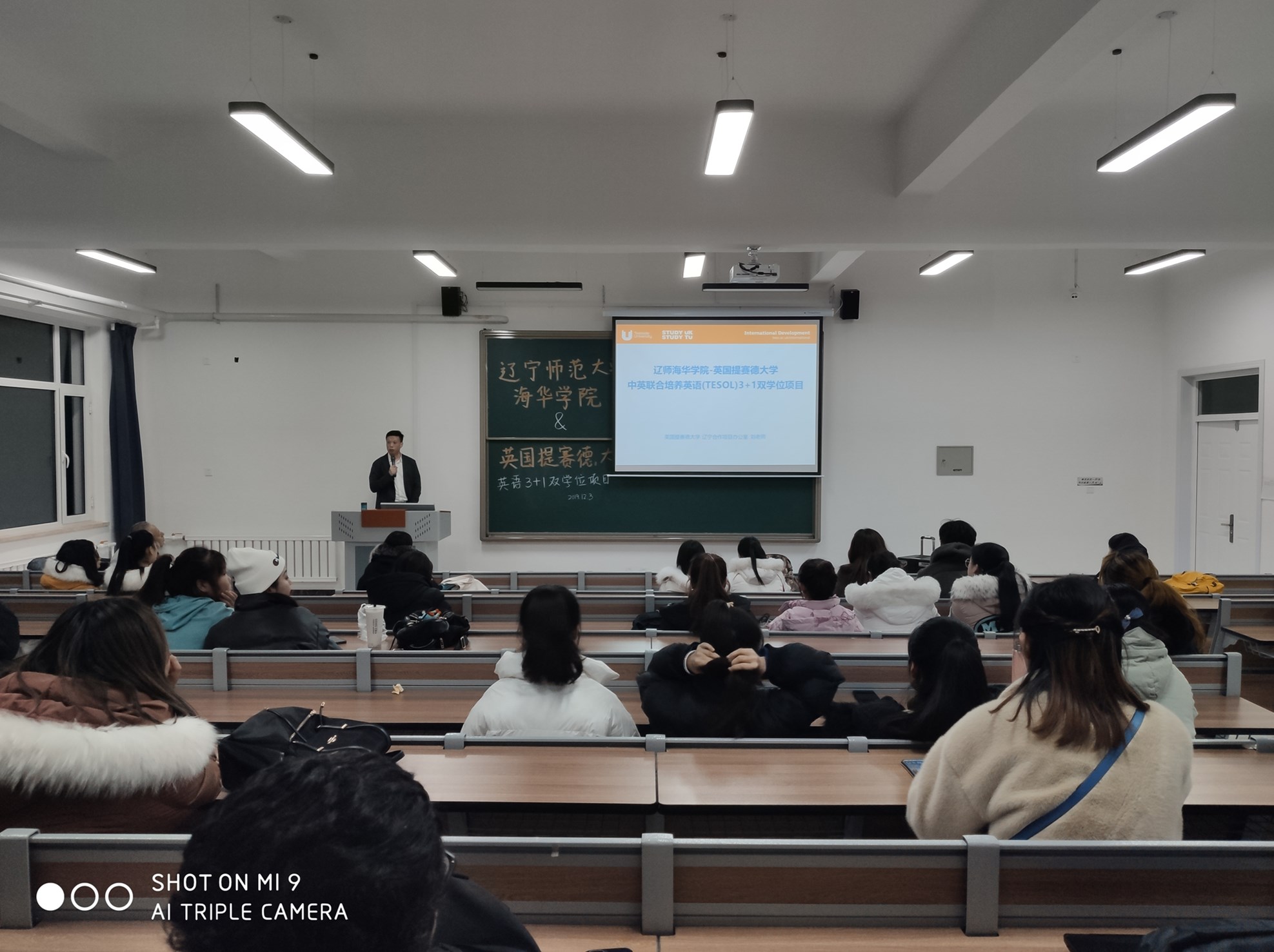 晚上,刘洋老师就中英联合培养英语(TESOL)3+1双学位项目,为我院英语专业学生做了说明,对提赛德大学的情况做了详细介绍,并对学生提出的相关问题做出解答。