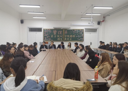 对校训的内涵和意义进行历史与时代的分析与讨论,将激励和劝勉着教师和学子们,即使是离开学校多年的人也会将校训时刻铭记在心。海华学子也会继续带着这样的精神走向社会,走向未来。校训体现学校的办学定位与目标。为此,我系于11月11日晚6:00在2-102教室召开关于校训、学院精神的学生研讨交流会,目的是通过校训所表现大学所共有的学风、校风的独特精神来促进学风建设。出席本次学生研讨交流会的有管理系主任栾美晨教授,管理系副主任朱爱辉副教授以及管理系辅导员老师和各年级学生代表。