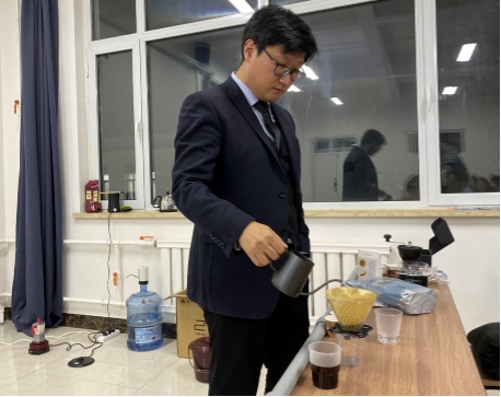朱爱辉老师为了让学生加深对讲座中有关咖啡相关知识的理解和掌握,现场为同学们展示了过滤式煮泡咖啡的完整过程,并与现场的老师同学们分享咖啡的浓香。