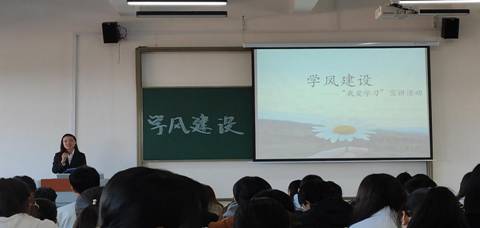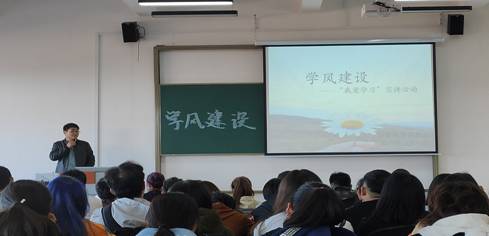 本次活动主要选取新生代表、学生干部和学习成绩优秀的学生代表上台发言;大会首先发言的是18级学生代表滕硕,她向大家展示了大学期间所获证书并分享自己的学习方法,鼓励大家养成良好学习习惯;学生干部代表集体宣誓要在平时做到不迟到、不逃课、不挂科,争做学习先锋模范。随后,19级学生代表胡歆笛和李梯沣发言,倡导大家面对学习需要端正态度、刻苦踏实、勤奋进取。最后,王维利老师做大会总结发言,希望同学们要明确自己的学习目的,端正学习态度,重新树立学习的信心,把被动学习变为主动学习。