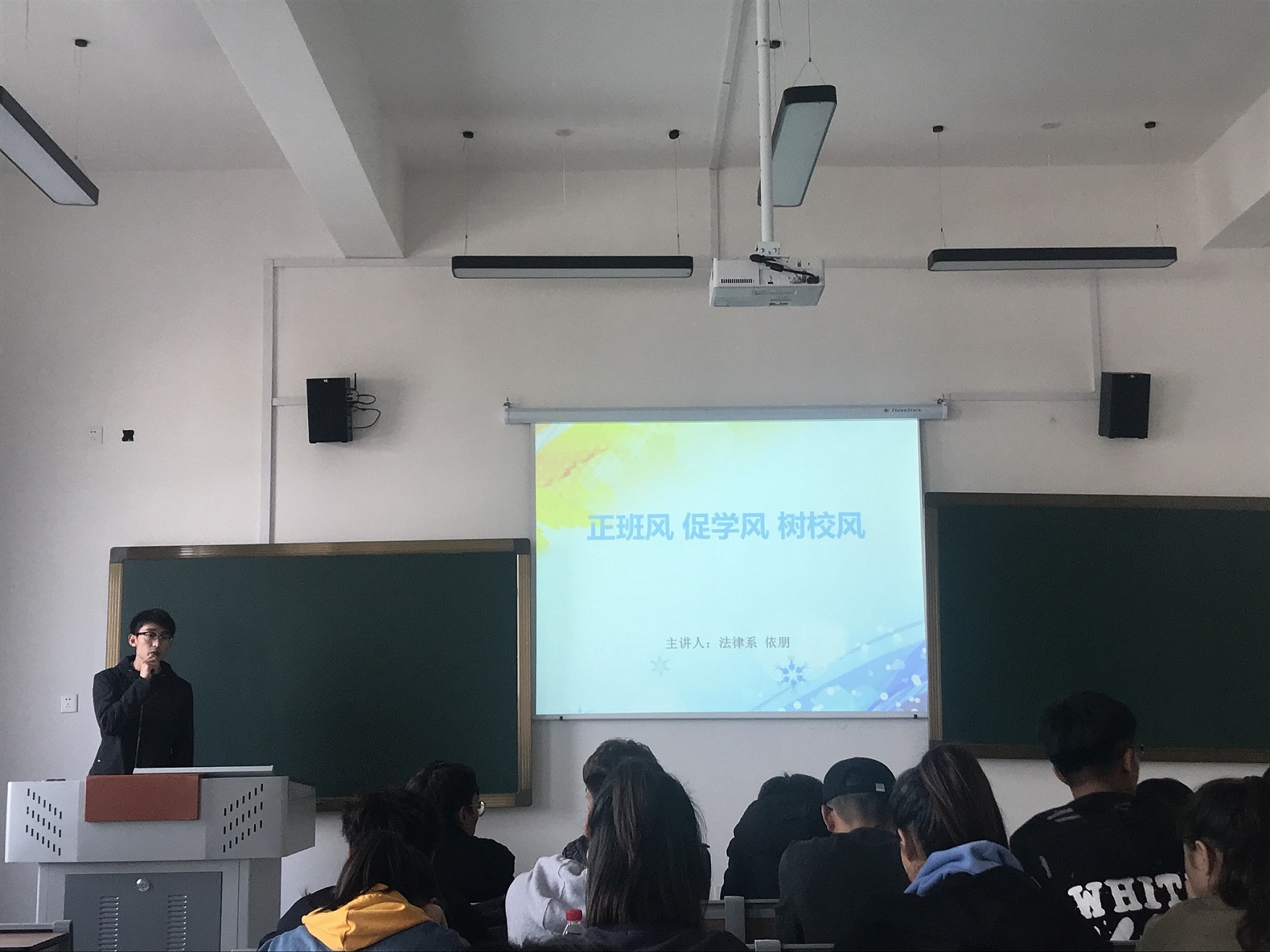 为了端正学生学习态度,加强学风建设,营造良好的学习氛围,2019年10月23日下午3时,法律系学生工作负责人依朋老师在6-210组织召开题为“正班风、促学风”的学生骨干培训工作会议,法律系各班班长、学习委员、入党积极分子参加了本次工作会议。