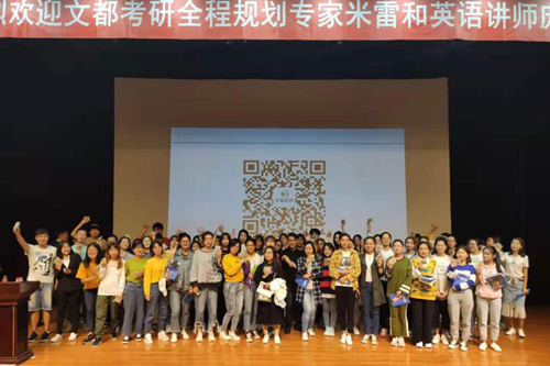 米雷老师就“为什么选择考研”,“考研考什么”,“怎样规划自己的考研路”等几方面的问题,为广大有意考研学子展开全程策划。米雷老师讲课风趣幽默,所讲内容丰富实用,同学们聚精会神,认真记录,讲座现场氛围浓烈。课后,部分学生还向米老师请教考研途中遇到的困惑,并得到了专业回复。
