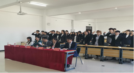 最后,由法律系学生会主席王东旭发言,他表达了对学生会未来发展的期待,也对自己提出了严格的要求,并带领学生会全体成员宣誓。