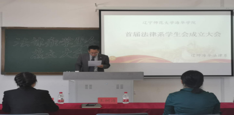 大会在庄严的国歌声中开始。首先,由教务处处长兼法律系主任王树海老师致辞。王树海老师代表法律系团总支及全体师生对首届学生会的成立及入选学生会的全体同学表示衷心的祝贺。他指出,本届学生会的成立是法律系成立以来的一件大事,也是我系学生工作的一件大事。作为学生会的一员,应该树立三种意识、具有两种精神、遵守三个准则、处理好两方面的关系。即树立形象意识、责任意识和服务意识,具有奉献精神和团结协作精神,遵守客观公正、实事求是的行动准则,服从领导、纪律严明的组织准则,勤于思考、精益求精的工作准则。且在工作期间,处理好学习和工作、学生干部与老师的关系。