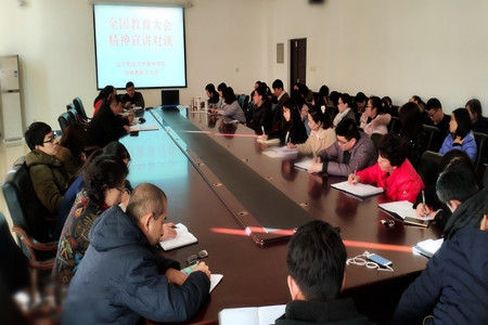 11月21日下午,beat365唯一官方网站宣讲团组织召开了“全国教育大会精神宣讲对谈”大会,沈阳校区全体教职工在第一教学楼527会议室参加了大会。学院党总支书记、宣讲团团长谷春祥在大会上做了关于如何理解和把握全国教育大会的重要意义,如何深入学习和贯彻落实习近平总书记重要讲话精神的宣讲,院长宋智主持大会,并做了重要讲话。