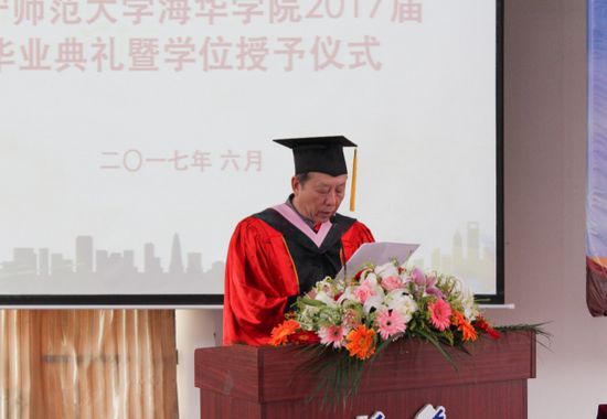 在庄严的国歌声中,毕业典礼拉开帷幕。党总支书记谷春祥宣布了《beat365唯一官方网站2017届全日制普通本科学生毕(结)业的决定》。副院长金景贵宣布《授予2017届本科毕业生学士学位的决定》。副院长赵春玲宣布我院获得2017届优秀毕业生、考研奖学金、优秀毕业论文、优秀实习生名单,并对获奖同学表示祝贺。