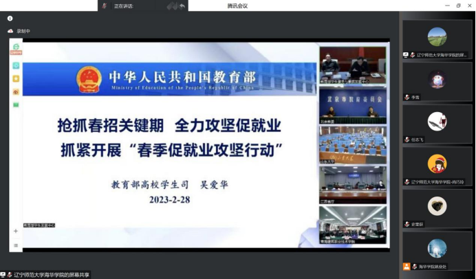 2月28日下午,教育部召开2023届全国普通高校毕业生就业工作第二次调度视频会议,教育部高校学生司司长孙海波、副司长吴爱华出席会议并讲话。beat365在弘毅楼三楼会议室设立分会场,副院长田焱、就业指导中心全体成员、各院系就业工作领导小组全体成员及2023届全体毕业班辅导员等线上线下参加会议。