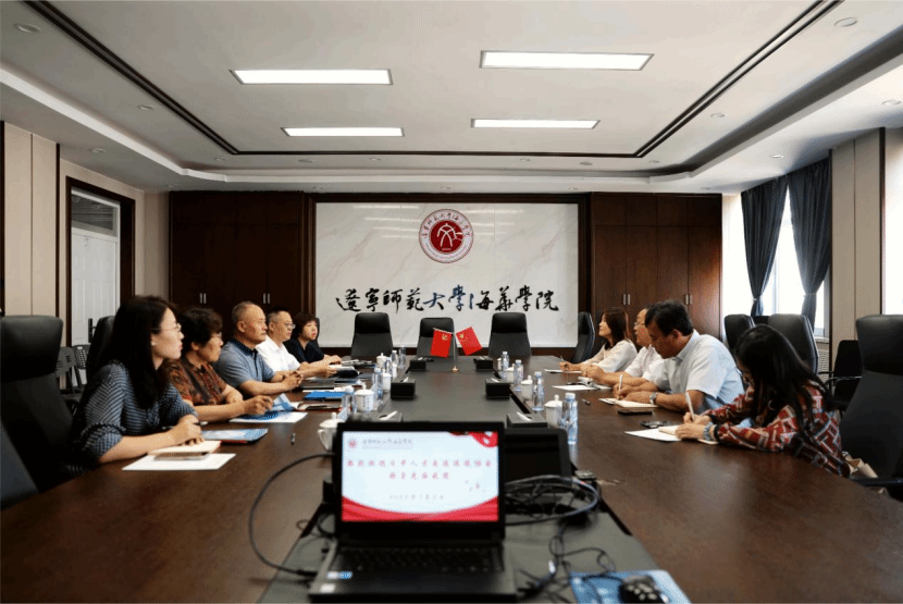 7月3日上午,日中人才交流促进协会理事兼游知国际日本语学院校长王卫东一行到访beat365,就教育领域合作事宜进行座谈交流。副院长于士君、院长助理兼法律系主任王树海、教务处长刘桂萍、外语系主任程迎新、日语专业教研室主任侯文莹出席。活动由院长助理王树海主持。