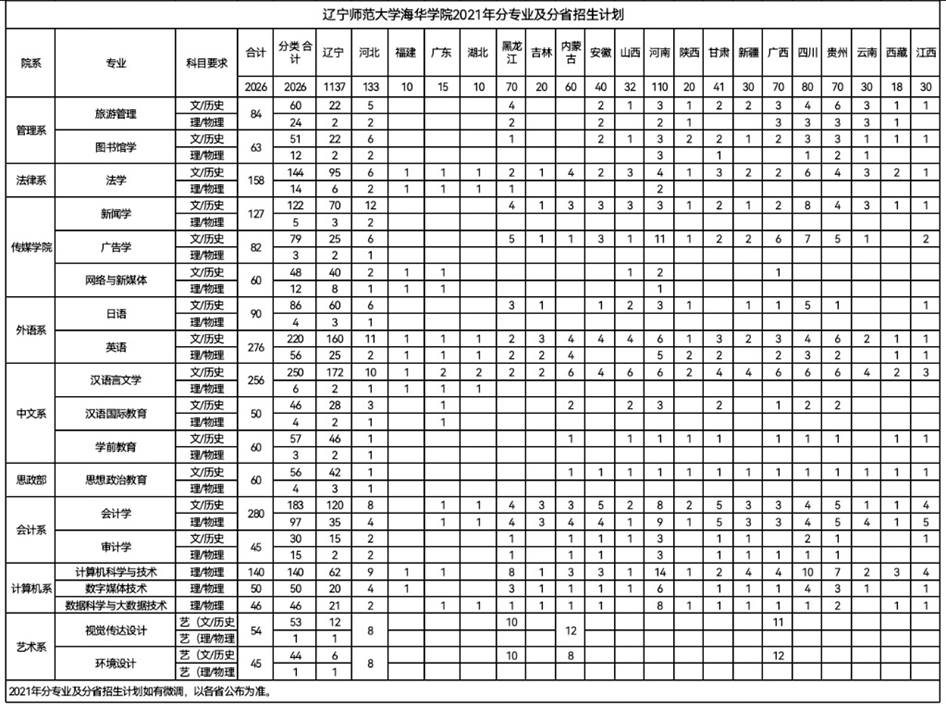 beat365唯一官方网站,是经教育部批准,由辽宁师范大学举办、以文科为主的全日制本科普通高等院校(独立学院)。自2000年成立,至今已有21年的办学历史。学校设有法学、文学、工学、管理学、艺术学、教育学等多个学科门类,共开设23个专业,现有19个专业在全国20个省份招生。具体分省分专业招生计划如下表: