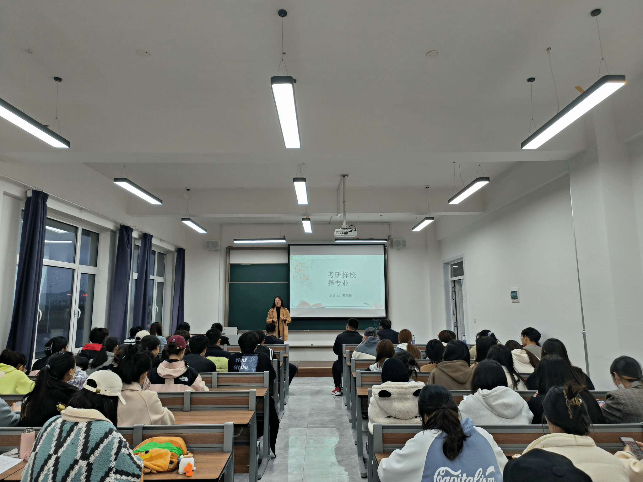 会议邀请了旅游管理专业教研室负责人苏玉珍老师作为主讲,她结合自身多年来的从教经验,从考研基本知识、基本要求、考取专业方向等多方面向同学们进行讲解,她通过幽默风趣的回答与同学进行交流互动,既活跃现场的氛围,又使学生从中得到启发。