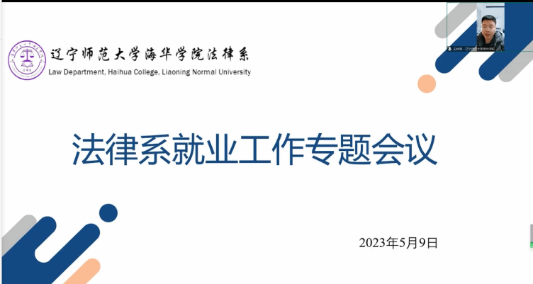 为了进一步贯彻落实学院就业工作会议精神,确保2023届毕业生高质量高效率充分就业。5月9日晚,法律系召开就业工作专题会议,会议由院长助理兼法律系主任王树海主持,法律系全体教职工参加会议。会议采用线上方式召开。