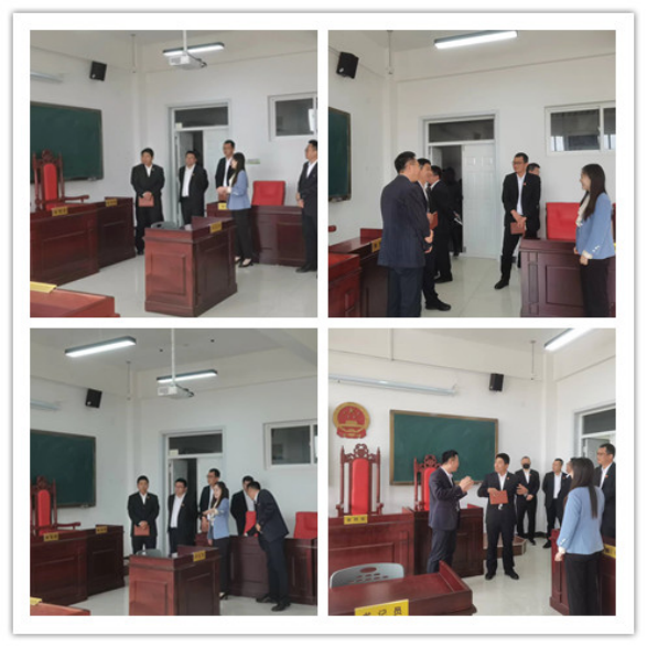 “初荷小社”的法官们首先参观了法律系的模拟法庭,法律系教师吴镇洲介绍了模拟法庭的概况、基本功能与课程建设情况,并提出了请法官走进学校模拟法庭,为学生传授庭审实践经验的期望。