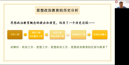 随后,思政部师吉金教授对三位老师的说课进行了点评。并提出说课的四个意义:第一,说课是教育学的理论在具体教学中的应用;第二,说课可以促进教研质量;第三,说课可以提高教师的教学素养,对青年教师有很大的帮助;第四,说课可以提高教学质量。