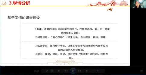 最后,思政部主任朱秀莉对本次说课活动进行了总结。对学校监评办的领导和老师到会指导、把脉、定向,表示感谢!专家老师的点评,既是对说课教师的鼓励和指导,同时也是对所有参会教师的指导、要求和鞭策!为下一步更好地开展说课活动,提升教师整体素质,起到了有意义的促进推动作用。朱主任表示,思政部全体教师要把此次说课活动当成一次契机,落实好立德树人的根本任务,用自己的实际行动,迎接党的二十大胜利召开。