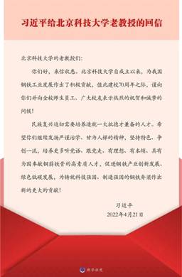 近日,习近平总书记给北京科技大学的老教授回信,对培养更多高素质人才,促进钢铁产业创新发展、绿色低碳发展提出殷切期望。