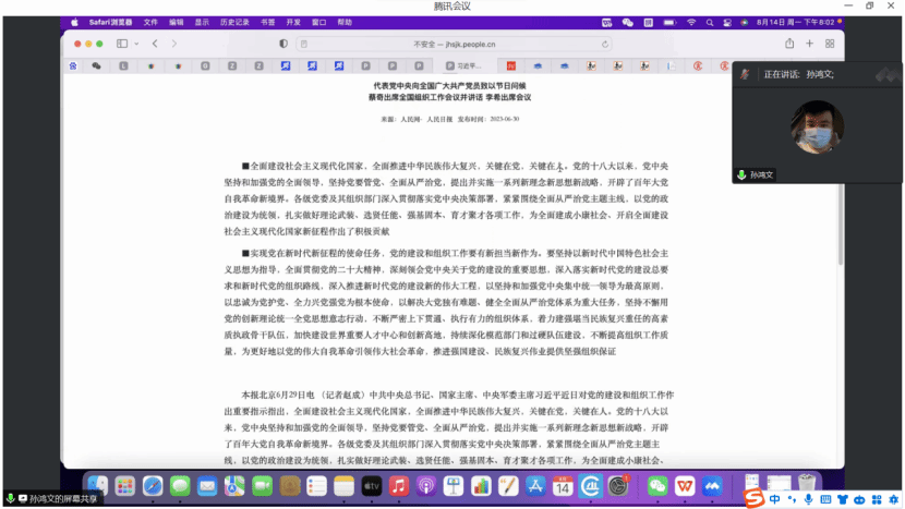 为了更加深入地学习和领会习近平新时代中国特色社会主义思想,根据辽师党委《关于在暑假期间持续开展学习贯彻习近平新时代中国特色社会主义思想主题教育的通知》有关精神和海华学校党委的要求,经过支委会研究决定,马克思主义学院党支部通过线上方式,于8月14日晚7:30进行了第二次集中学习研讨。学习研讨的内容是习近平总书记关于党的建设的重要论述,全体党员参加了本次会议。