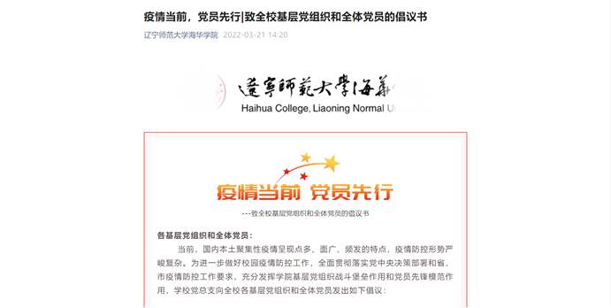 在3月21日下午,针对中共beat365唯一官方网站总支部委员会下发的“疫情当前,党员先行”的倡议书,思政部公共教学部党支部第一时间组织党员学习,针对党总支提出的,加强组织领导,提高政治站位;压紧压实责任,强化使命担当;带头先行表率,树立先锋模范等倡议,思政部公共教学部党支部的全体党员第一时间深入学习,做到将党总支的指示精神入脑、入心、化为自身的自觉行动;在学校党总支的领导下,发挥党员自身先锋模范作用,坚决打赢疫情防控阻击战;并且在第一时间,党员同志转发了党总支的倡议书。