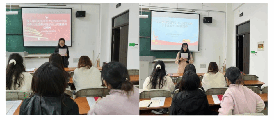 接着,由宣传委员吕博文同志和王超书记带领学习:深入学习习近平总书记在新时代推动东北全面振兴座谈会上的重要讲话精神和深入学习习近平总书记给东北大学全体师生的回信精神。
