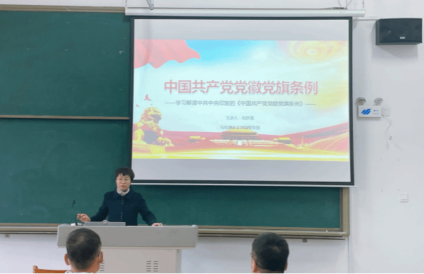 为了规范党徽党旗制作、使用、管理,充分发挥党徽党旗的政治功能,增强党的凝聚力、战斗力,激发党员党的意识,激励支部党员不忘初心、牢记使命,坚定理想信念,在党的旗帜下奋勇前进。马克思主义学院党支部全体党员于2023年11月28日在图书馆207室共同进行了《中国共产党党徽党旗条例》的学习。党支部书记刘彦清为全体党员讲解了中共中央印发的《中国共产党党徽党旗条例》。