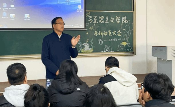 为全面调动马院学子考研积极性,帮助更多同学了解考研形势,提升考研能力,11月29日下午,我院召开考研动员大会。科技处处长孙占如、马克思主义学院院长刘广东、马克思主义学院副院长刘彦清、孙鸿文以及马院部分教师出席大会,马院21级全体学生参加了本次动员大会,大会由马克思主义学院副院长刘彦清主持。