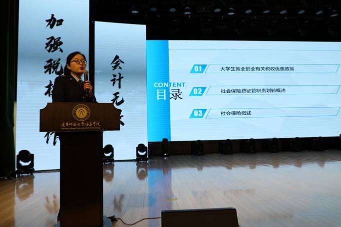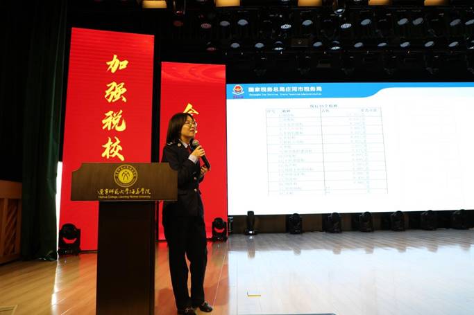 ·庄河市税务局税政科副科长赵庆杰、庄河市税务局非税收入科副科长刘贵燕为会计系同学进行相关知识讲解