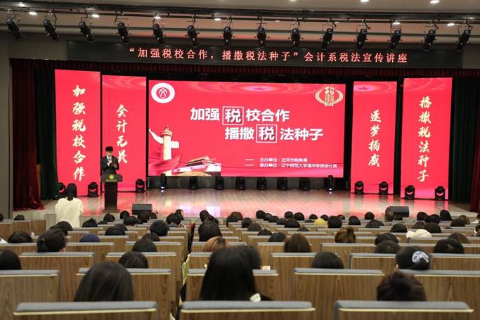 伴随着庄河温暖的海风,会计系携手庄河市税务局于2021年4月29日下午13:30在报告厅举行了“加强税校合作,播撒税法种子”主题活动。本次活动邀请了以下领导、老师:庄河市税务局及庄河就业中心:庄河市税务局副局长周克兵、庄河市税务局非税收入科科长杨自超、庄河市税务局税政科科长孔源、庄河市税务局税政科副科长赵庆杰、庄河市税务局非税收入科副科长刘贵燕、庄河就业中心主任王琳。beat365唯一官方网站:beat365唯一官方网站副院长田焱、beat365唯一官方网站会计系主任刘迪、beat365唯一官方网站审计处副处长汤心、beat365唯一官方网站就业指导中心潘光辉、beat365唯一官方网站会计系副主任李凌峰等。