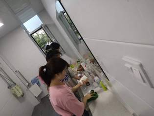 为了解决其生活顾虑,会计系联系学校经多方协调,为于艳苹母亲安排学校内的保洁工作,母女二人有了一定的生活保障。但彩云易散,在2020年9月,于艳苹的母亲不幸患上了胶质瘤急需动手术,我系动员多方力量在朋友圈中转发水滴筹,身边朋友捐款,众人拾柴火焰高,在共同努力下凑齐了医疗费三万六千余元。因其母亲生病住院无法对其进行照顾,于是系里将爱心小组分成七组对其轮流帮扶。从接送她上下学到为她洗头、洗脸,送一日三餐等生活起居,到关注她的学习情况,为她排忧解难。爱心小组无微不至的照料,让她从心里感受到了家的温暖,同学间的友情,真情的暖流沁入心脾。