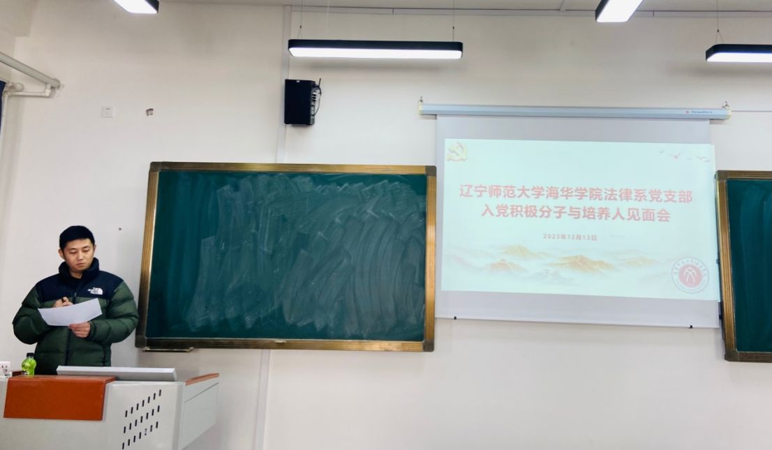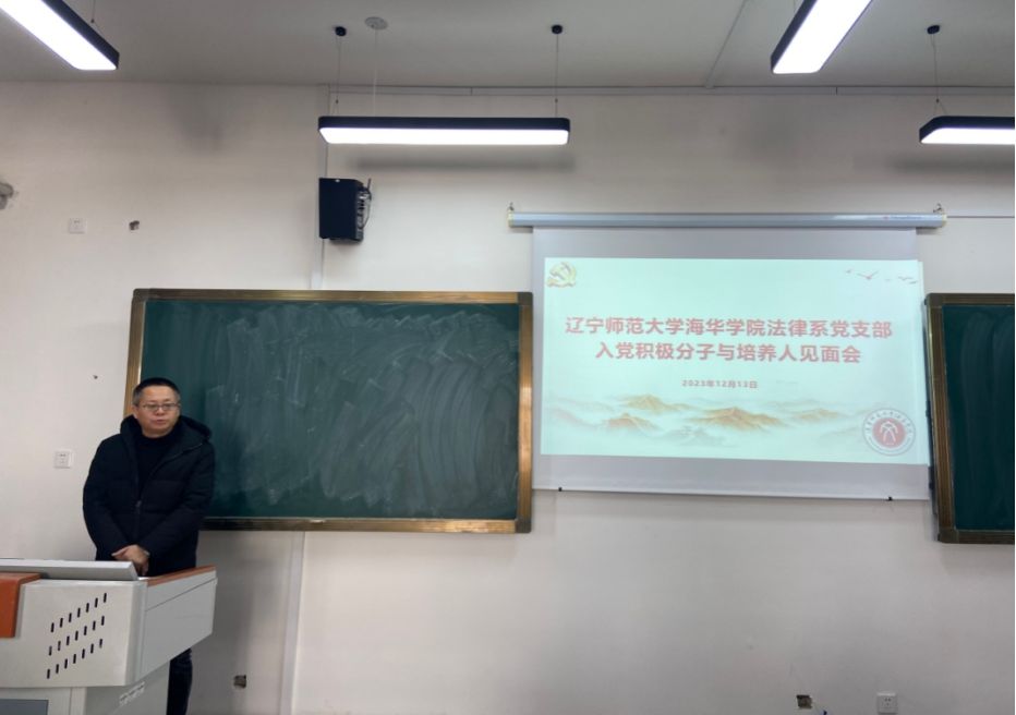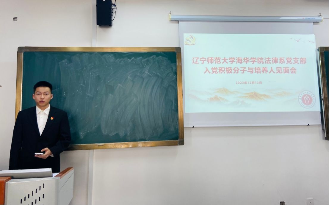 为进一步做好入党积极分子的培养考察工作,规范发展党员程序,保证发展党员质量,夯实组织育人阵地,2023年12月13日下午,法律系党支部在5—307教室召开第七十八期入党积极分子与培养人见面会。法律系党支部书记王树海、组织委员王允泽、宣传委员孙旗、培养联系人董文泉、李梦等同志和本期确定的路天同等52名入党积极分子参加了此次会议。会议由王允泽同志主持。
