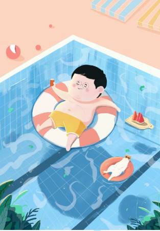 本次的插画设计源自生活的具象化,沙滩,泳池,无尽的遐想构建了内心的图画,蓝色白色等明度高配色,体现轻松活泼的夏日泳装系列,清爽一“夏”。