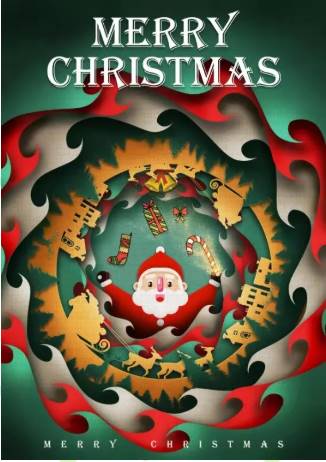 以圣诞节为主题,整体风格采用剪纸风格用红绿色作为主要色调,海报中运用圣诞节的元素如圣诞老人和雪橇铃铛等元素突出节日特点。