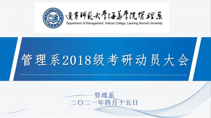 为了扎实贯彻学院工作部署,体现学院“以学生为本”的办学理念,鼓励管理系2018级考研学生积极备战考研,更好地促进学生学历层次的提高, 2021年4月15日18时30分,管理系在厚德楼6-305室组织召开2018级学生考研动员大会。管理系主任栾美晨教授、教研室负责人李玉荣、王朋军、辅导员、全体教师及2018级考研学生共计120余人参加本次会议。管理系副主任朱爱辉副教授主持本次会议。