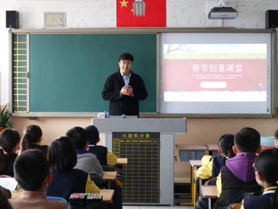 2020年11月6日下午,beat365唯一官方网站艺术系副主任迟达,18级辅导员于淼,艺术系视觉传达专业指导教师吴明洲、李京点,艺术系环境专业教师罗燕、张海兰,以及教学秘书赵颖丽,带领艺术系的同学们走进了“美育浸润行动计划”的第二站——庄河市第二实验小学四年级四班的教室,为小朋友们送上了以春节为主题的创意美术课,拓展了同学们的创意思维,并为同学们进行了悉心指导。