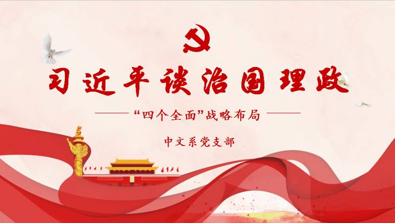 中文系党支部要求党员同志要认真学习、贯彻“四个全面”战略布局思想,把握好其主要内容、理论方法、精神实质和逻辑关系。深刻领会“四个全面”之间的有机联系,灵活掌握及运用理论导向,争做课程思政的模范,敢于担当、敢于作为,练就过硬本领,锤炼品德,用实际行动推进“四个全面”战略布局,做到不辱于时代使命,无愧于党和人民的培养与信任。