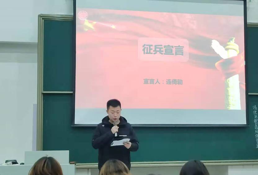 学生代表涂太阿康从参军政策方面给大家介绍了征兵意义、国家形势、范围要求和相关政策,充分调动了同学们应征入伍的积极性;张予时从军营生活方面分享了自己在军队接受教育、磨炼意志,成长、成才的收获与喜悦,并鼓励同学们携笔从戎、参军报国、磨炼人生,成就更优秀的自己,实现人生理想。