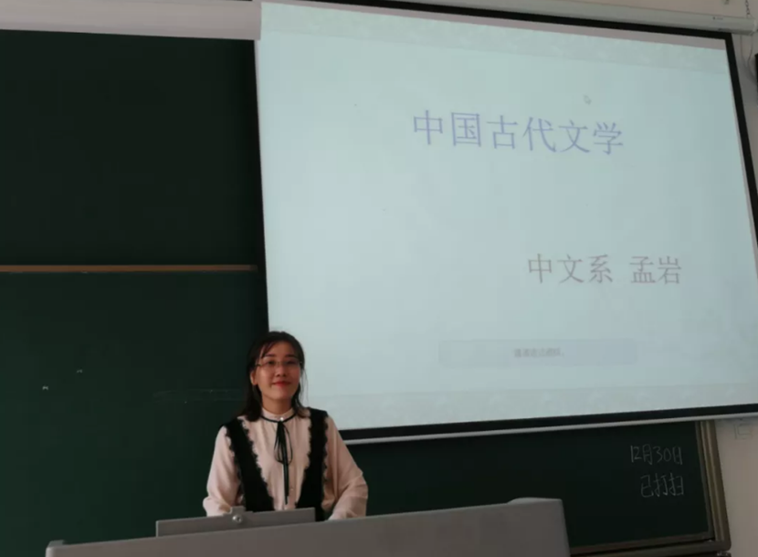 首先,由汉语言文学教研室负责人孟岩做说课示范。