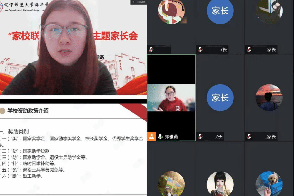 学校始终坚守为党育人、为国育才初心使命,落实立德树人根本任务。为确保学校资助育人成果,将学校的温暖送到每一个真正需要帮助的学生手里,法律系家访团精心策划,组织召开线上家长会,全体受资助学生及家长共计100余人参会。在线上家长会中,辅导员老师了解相关学生家庭实际困难,向家长反馈了学生在校期间的表现,对学校的资助相关政策、资助项目、资助类别、资助金额等进行了详细的讲解介绍。各老师根据自身工作实际,结合不同年级,对学生的学习目标和方向提出了针对性的建议,并积极引导家长鼓励学生在完成基础学业的同时,合理规划今后发展方向,确保家庭经济困难学生全部顺利就业。会上,家长与学生积极发言,对学校的资助政策有了进一步的认识。此次线上家长会的成功召开,夯实了学校关于精准资助育人的初衷,充分体现出学校对资助育人的重视程度。学校将不遗余力帮助学生心无旁骛,顺利完成学业,勉励学生早日回馈父母,不负家校培养。