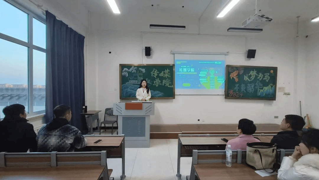 为帮助考研学生树立正确的考研观、坚定考研信心,了解考研相关知识,近日传媒学院在厚德楼6-212传媒学院为2021级考研学生召开了考研讲座。本次讲座由考研辅导员张仔堃老师主持,传媒学院院长周媛、副院长季艳颖、院长助理刘雨、新闻学专任教师孙震和22级辅导员张博凯参会。
