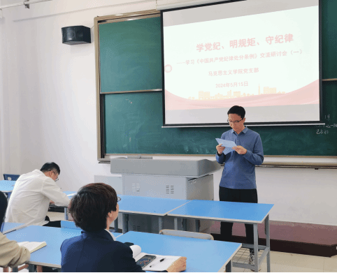 为进一步贯彻落实中共中央办公厅、辽宁省委和省教育工委、学校党委关于开展党纪学习教育的相关部署和安排,根据马克思主义学院关于开展党纪学习教育的实施方案要求,2024年5月15日马克思主义学院党支部在图书馆307教室开展学习《中国共产党纪律处分条例》交流探讨会。