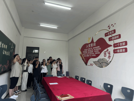 在佩戴党员徽章之后管理学院党支部全体师生党员举行了重温入党誓词,坚定理想信念的宣誓活动,为此次七一建党主题活动画下了一个完美的句号。