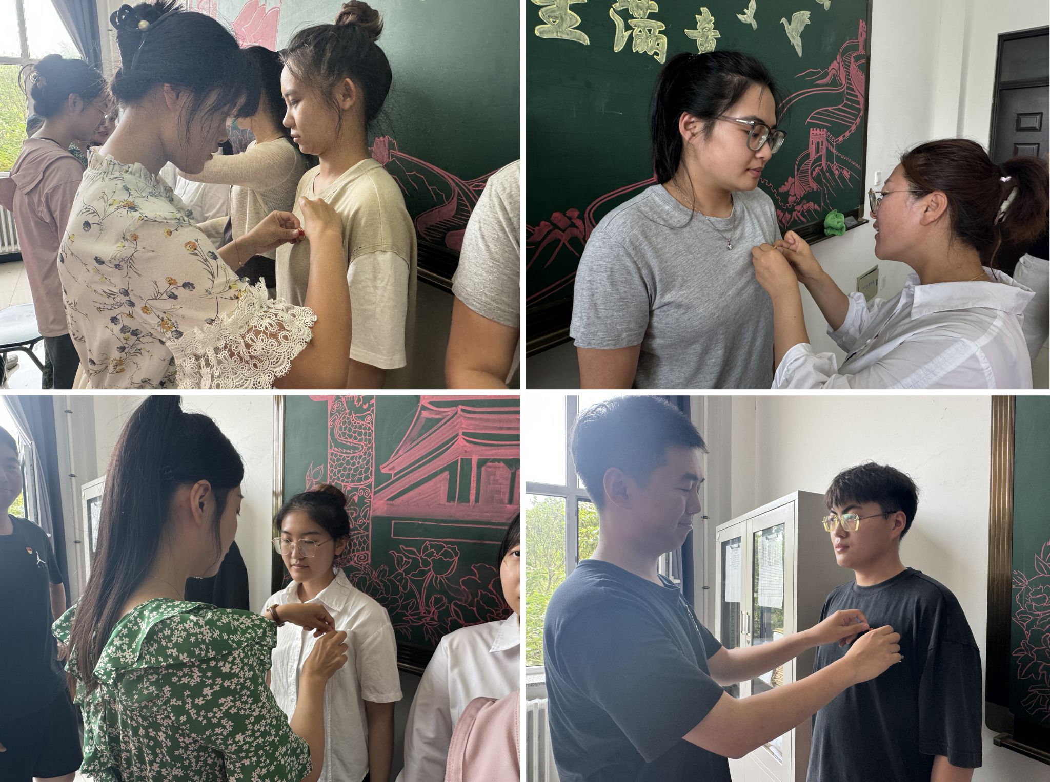 在完成学习与研讨之后,老党员们对预备党员表达了殷切的希望与嘱托,并为他们佩戴党员徽章,希望他们牢记共产党员的政治责任和历史使命,全面提升个人素养,保持作为一名共产党员的积极性与先进性。