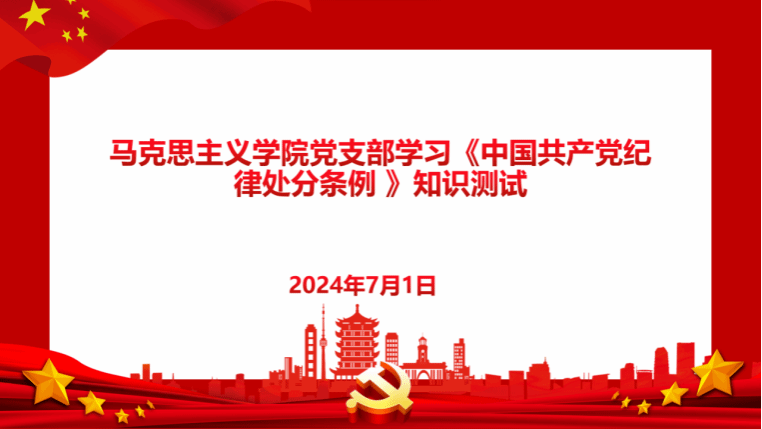 为推进党纪学习教育走深走实,教育引导马克思主义学院党支部成员在学纪、知纪、明纪、守纪上走在前、做表率,2024年7月1日,马克思主义学院党支部开展学习《中国共产党纪律处分条例》知识测试,支部全体党员参与了此次活动。
