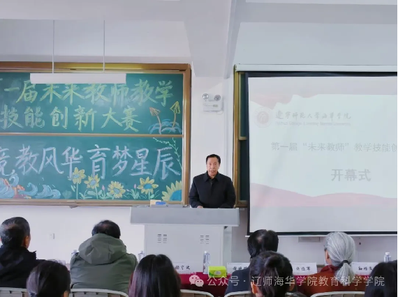 他对未来教师提出六点希望:一是希望未来教师要有坚定理想信念。以教育强国为志,将个人职业理想融入国家教育事业,在教育实践中传递信念力量,让学生树立正确价值导向。二是希望未来教师要有坚实的学科素养。精准把握学科知识脉络,把专业知识转化为优质教学内容,以深厚学养启迪学生思维,夯实学生知识根基。三是希望未来教师要有顺应时代的智能素养。熟练运用数字教学平台,创新教学方式,培养学生适应新时代的学习与创新能力。四是希望未来教师要有严谨科学态度。教学遵循教育科学规律,严谨备课、授课与评价,用科学精神感染学生,激发学生探索求知的热情。五是希望未来教师要有厚重的人文精神。以仁爱之心育人,尊重学生独特性,塑造学生健全人格与良好品德。六是希望未来教师有过硬的教学技能。能灵活选用教学方法,高效管理课堂秩序,以精湛技艺提升教学品质,促进学生全面发展。最后宣布大赛开幕,望学子赛出佳绩。